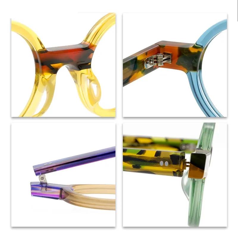 Óculos de Acetato Redondo Vintage Unissex Óptico Steampunk 55104